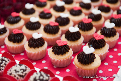 Esta festa foi feita para 50 convidados toda personalizada em tons de vermelho e branco, teve docinhos, maças do amor, chocolates e biscoitos personalizados, algodão doce, bem casados, cupcakes, um bolo lindo... e toda essa festa foi feita com menos de 3 mil reais!